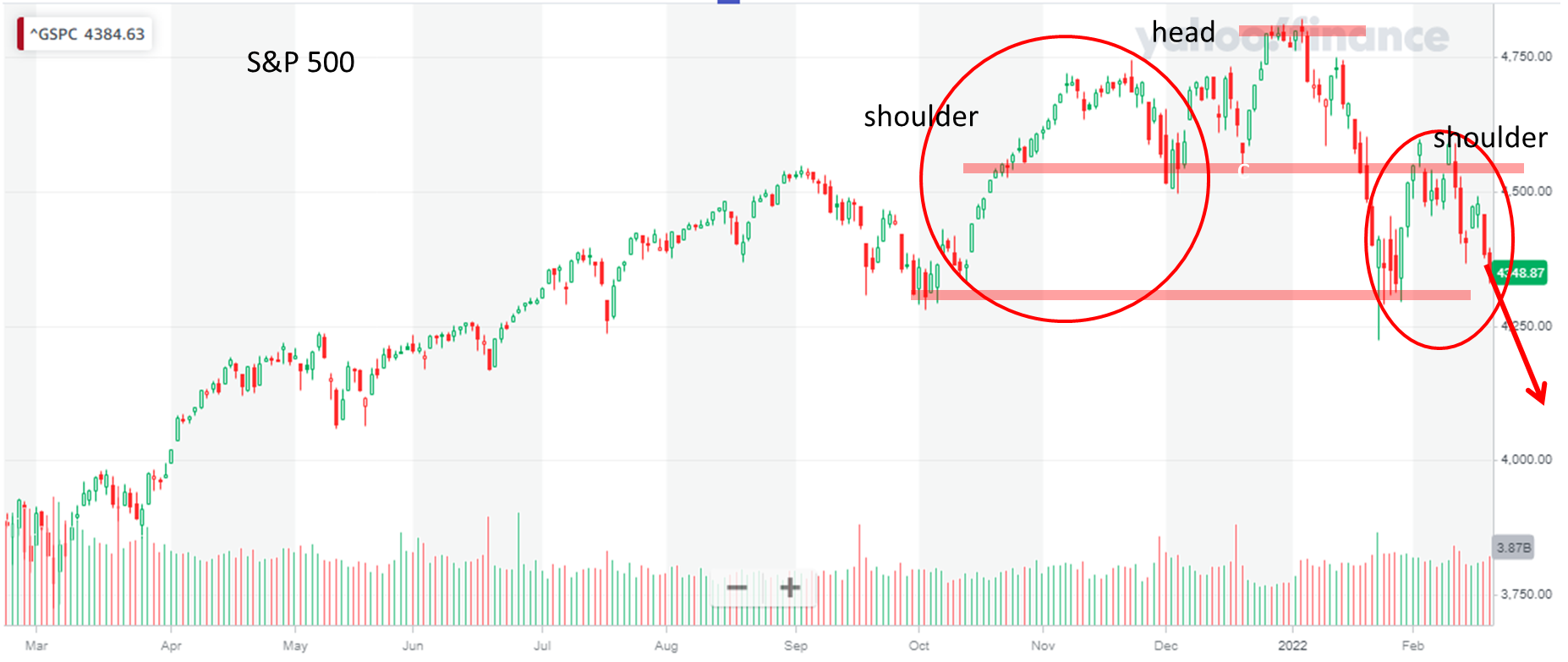 차트 분석가들은 최근의 S&P 500 차트가 헤드 앤 숄더 유사 패턴을 보여주고 있다고 합니다.