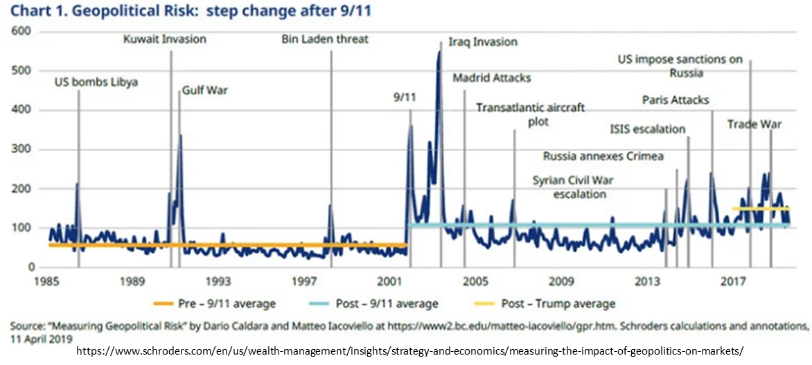 지정학적 위험은 군사 분쟁에서 기후 변화 및 브렉시트에 이르기까지 광범위한 문제로