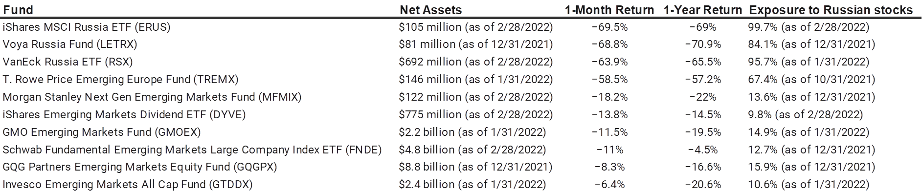 VanEck Russia ETF와 Blackrock의 iShares MSCI Russia ETF는 모두 지난 2주 동안 65~70% 하락했습니다.
