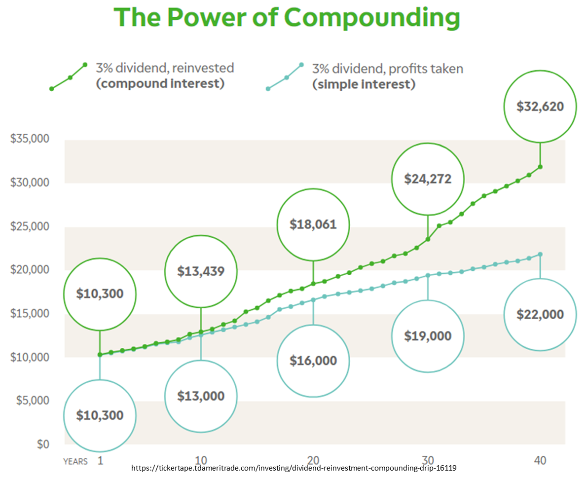 배당금 재투자는 장기적으로 성장에 엄청난 영향을 미칠 수 있습니다.