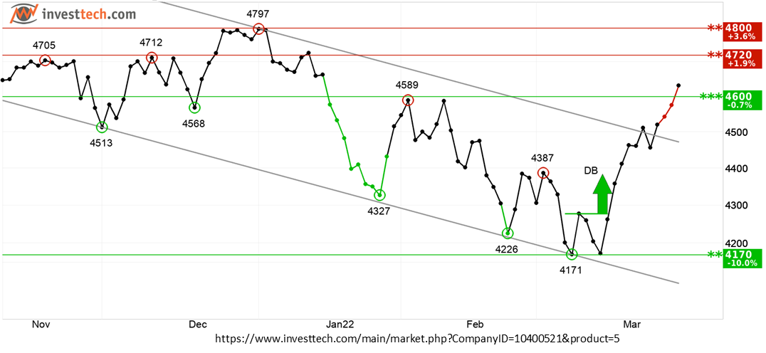 지수는 4600 지점에서 저항을 돌파했으며 추가 상승 가능