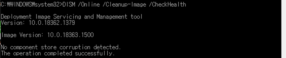 DISM /Online /Cleanup-Image /CheckHealth을 실행합니다.