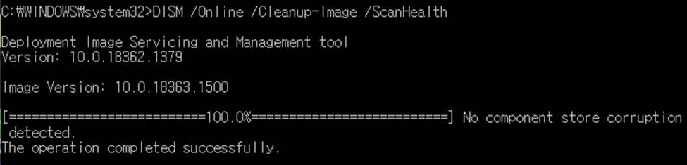 DISM /Online /Cleanup-Image /ScanHealth을 실행합니다.