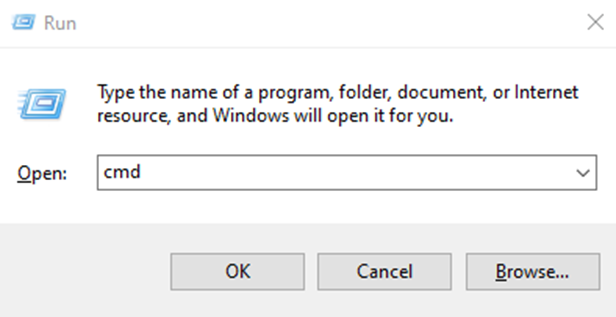 실행창에 cmd를 입력하고 관리자 권한으로 실행합니다: Ctrl+Shift+Enter