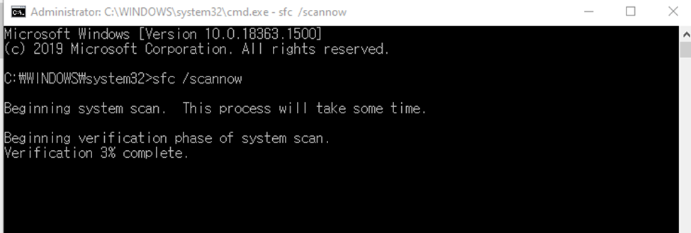 다음 cmd 창에서 sfc /scannow를 실행합니다.