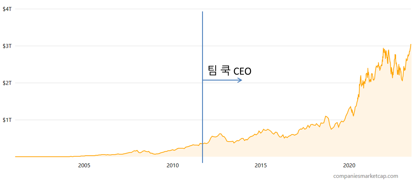 팀 쿡의 리더십 아래 애플은 최초의 2조 달러이자 최초의 3조 달러 규모로 성장