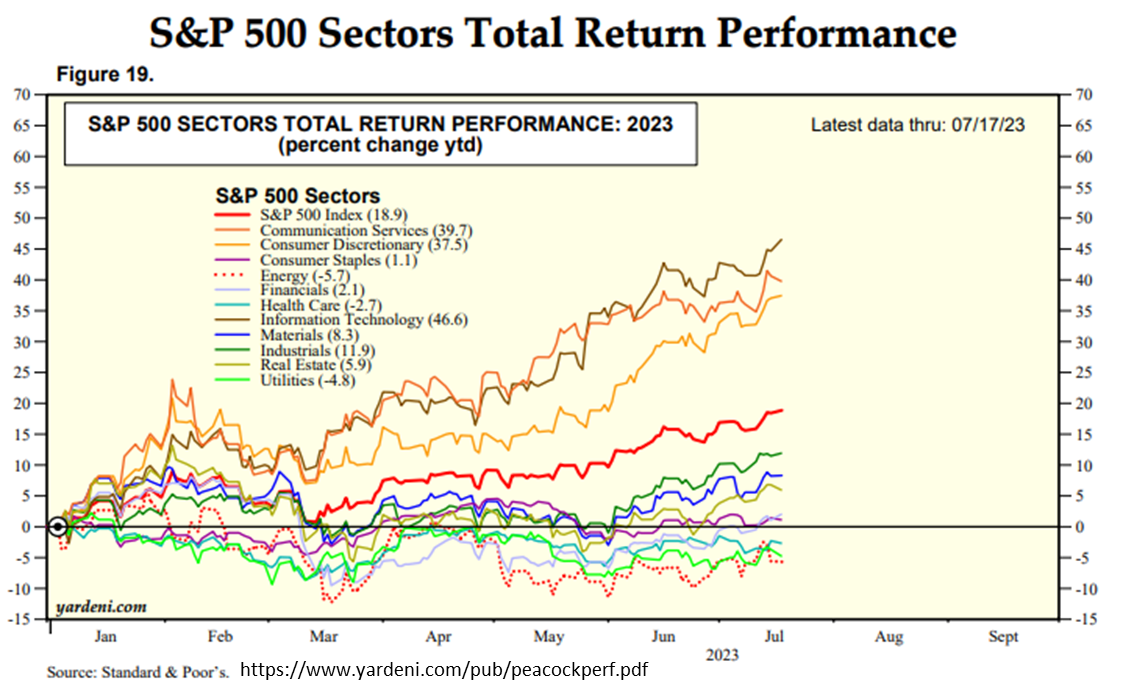 위의 3개 섹터를 제외한 나머지 섹터는 S&P 500의 YTD 수익률에 미치지 못하고 있습니다.