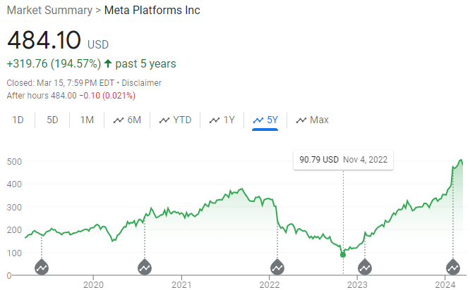1년 반도 안 되는 기간 동안 메타는 무려 458.8% 상승했습니다.