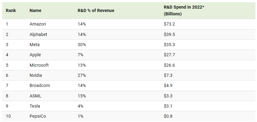 3. Meta의 매출액 대비 R&D 비율은 28.5%로 'Magnitive Seven' 기업 중 가장 높습니다.