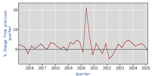 - 생산성 감소: 2025년 1분기 생산성은 0.8% 감소, 이는 예상치였던 0.1% 감소보다 훨씬 심각한 수준.