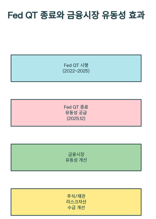 2025년 12월부터 Fed는 QT를 끝내고 만기 도래한 자산을 재투자, 즉 ‘시장 유동성 공급’ 모드로 전환합니다.
