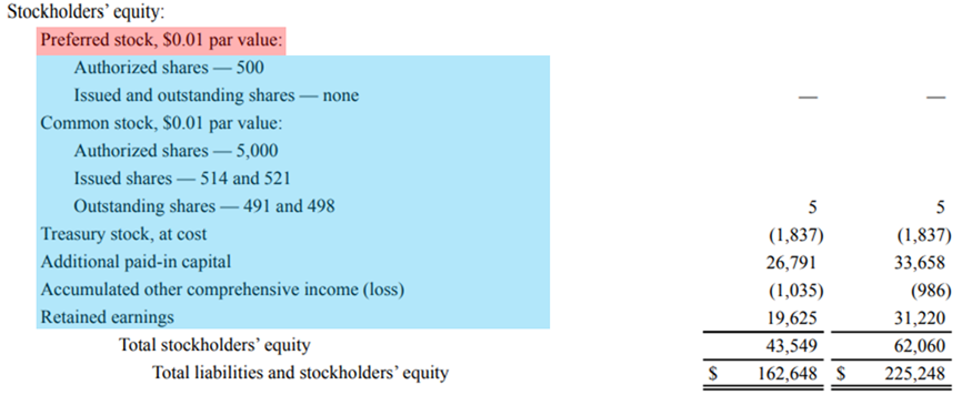Treasury stock, at cost (자기 주식 : 비용) : 재 취득 주식이라고도 하는 자기 주식은 회사가 주주로부터 재구매한 미결제 주식을 나타냅니다.